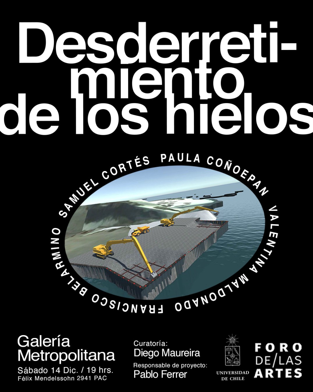 Desde el 14 de Diciembre hasta el 5 de Enero estará abierta la exposición colectiva «Desderretimiento de los hielos» en Galería Metropolitana curada por Diego Maureira.