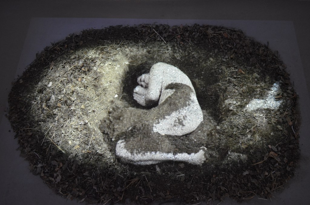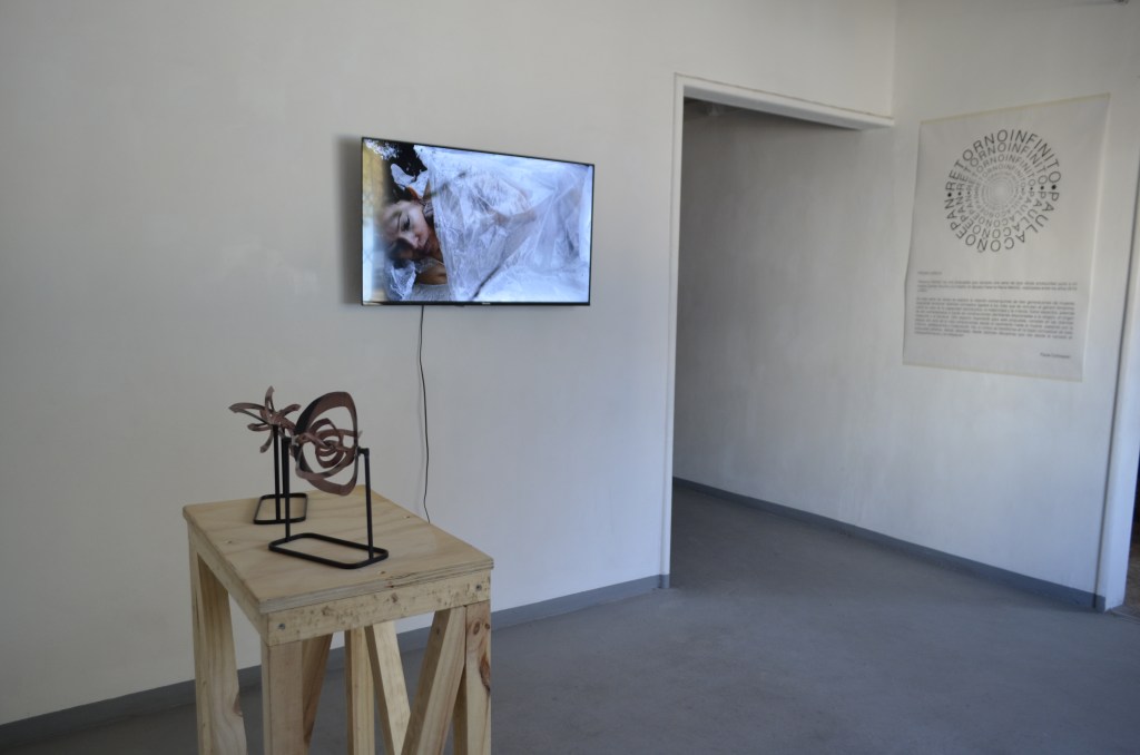 Las obras que componen “Retorno Infinito” tienen distintas disciplinas, como el vaciado a la performance y la instalación. En las obras “La Matriz” (2014) y “La Vagina es la Matriz”(2015-2021) utilizo el vaciado para apropiarme de la técnica y sus conceptos -matriz y copia- y así de manera concreta, cuestionar la vinculación con la maternidad, la que inherentemente siempre es atribuida a las mujeres por la sociedad. De esta forma, en el video “La Matriz” realizo un vaciado en yeso del cuerpo de mi madre, para luego introducir el propio, y así convertir a ella en mi matriz y a mí en la copia. Por otro lado, la obra “La vagina es la matriz” consiste en una serie de vaciados vaginales realizados en resina transparente, producidos en base a la contraforma de la vagina, materializando el interior de este órgano también conocido como “Aparato reproductor femenino”.
